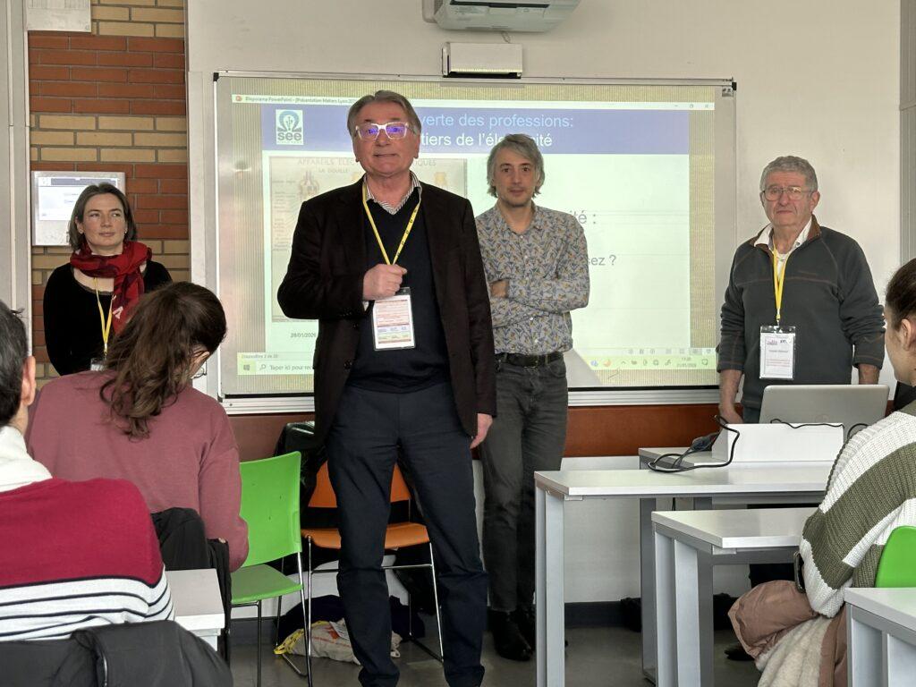 Cette présentation des métiers de l’électricité s’est faite en coanimation avec 2 personnes en charge du thème de la RSE ; les 2 sujets se rejoignent aisément et l’élargissement de la cible a certainement contribué la forte affluence des 3 sessions soit près de 90 lycéens et parents pour des échanges très positifs vers des jeunes attentifs, ce dont nous nous réjouissons.