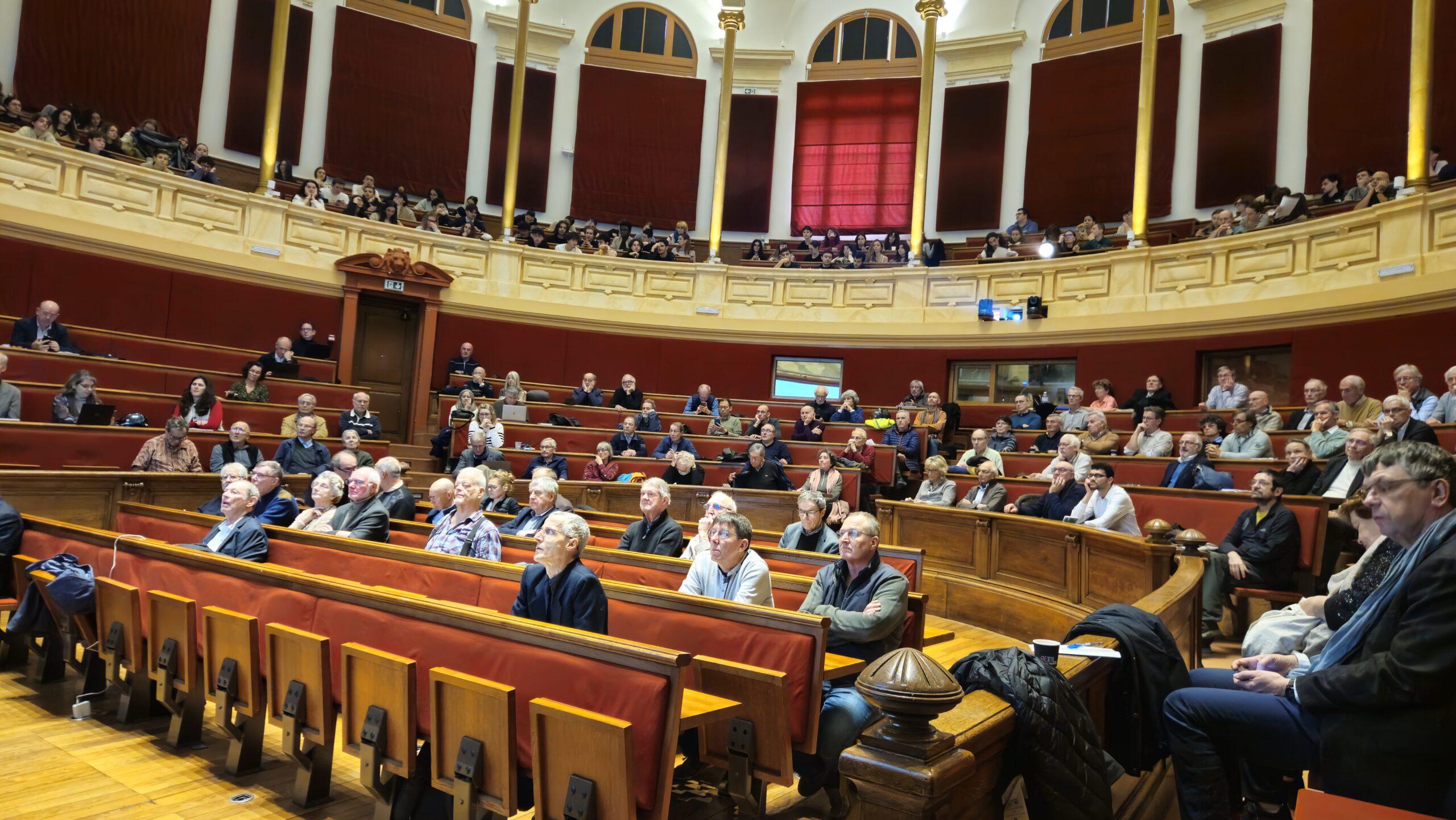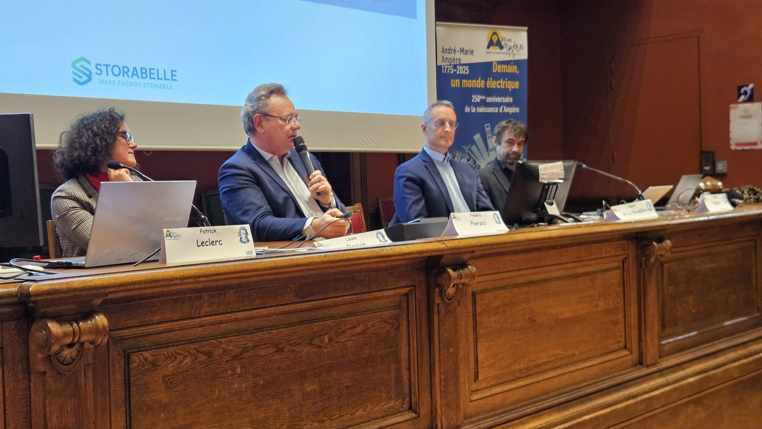En particulier, l’après-midi du 11 décembre, en présence d’un nombreux public et de la forte représentation de lycéens, a été consacrée à ce dernier thème avec des interventions de François Gerin présentant « De la lumière électrique aux lasers », Jean Hermetz – ONERA « Les défis de l’avion électrique : du projet Ampère à Dragon », Emmanuel Cardoux – Renault « Histoire de la voiture électrique – Projet Renault Ampère », Anne-Laure Biance – Université Claude Bernard Lyon 1 « L’énergie bleue » et Jean-Marie Tarascon – Collège de France « Les batteries de demain » puis une table ronde. Celle-ci a porté sur « Quels choix technologiques pour l’électricité de demain ? » avec les interventions et les échanges sur les « Réacteurs à sels fondus au thorium pour une énergie nucléaire plus sûre et durable » avec Laure Claquin – Thorizon , la « Coopération internationale sur le photovoltaïque et suivi global du secteur solaire » avec Daniel Mugnier – Président du Programme PVPS de l’Agence Internationale pour l’Energie, le « Stockage thermique longue durée pour décarboner l’industrie » avec Fréderic Pierucci – Storabelle et les « Réseaux électriques en courant continu pour intégrer les renouvelables à grande échelle » avec Hubert de La Grandière – Supergrid Institute.