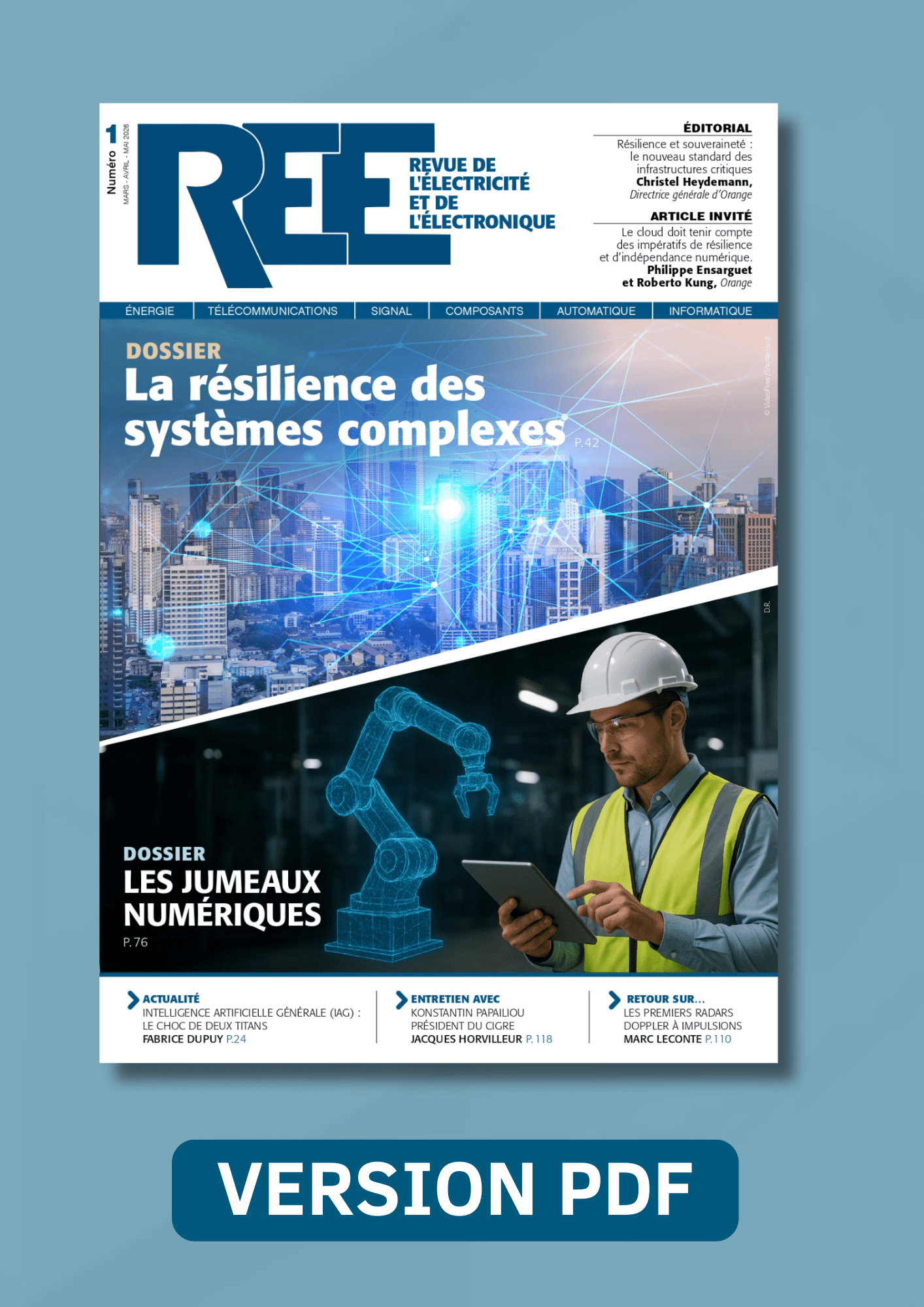 Le numéro REE 2026-1 est placé sous le signe de la résilience des grands systèmes à l’échelle nationale voire européenne, dont la complexité croissante rend la gestion plus ardue et qui est susceptible, si on n’y veille pas, d’induire des risques de dysfonctionnement potentiels. C’est le cas en particulier des réseaux de télécommunications, qui font l’objet de l’éditorial de Mme Heydemann, directrice générale d’Orange, ou encore des réseaux électriques. Ces cas sont tous deux abordés dans le premier dossier qui donne la parole aux acteurs de terrain.