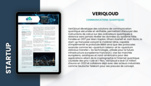 VeriQloud développe des solutions de communication quantique sécurisée et vérifiable, permettant d’envoyer des instructions de calcul sur des ordinateurs quantiques à distance sans jamais révéler les données au système hôte. Fondée en 2017 par Marc Kaplan, Elham Kashefi et Josh Nunn, la start-up française conçoit le matériel Qline, capable d’implémenter le protocole BB84 ainsi que des protocoles avancés comme les « quantum tokens » et le « quantum oblivious transfer ». Sa technologie, utilisée pour la future infrastructure européenne FranceQCI, vise les marchés européens, asiatiques et nord-américains pour des applications allant de la cryptographie à l’Internet quantique. Lauréate des prix i-Lab et i-Nov, VeriQloud a levé 1,9 million d’euros en 2023 et collabore déjà avec des acteurs industriels comme Deutsche Telekom pour ses preuves de concept.